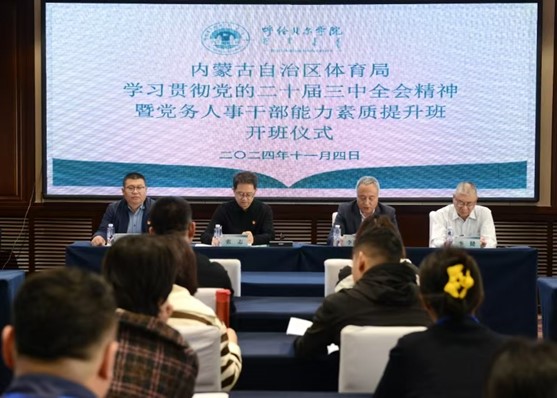 11月4日,由内蒙古自治区体育局委托公司beats365承办的内蒙古自治区体育局学习贯彻党的二十届三中全会精神暨党务人事干部能力素质提升班顺利开班。自治区体育局党组成员、副局长张志,自治区体育局机关党委专职副书记刘文利,呼伦贝尔公司党委委员、副董事长李跃武,继续教育公司党总支书记李健、授课专家、管理团队以及全体学员参加了开班仪式。刘文利主持了开班仪式。