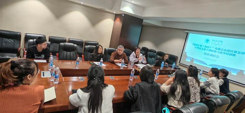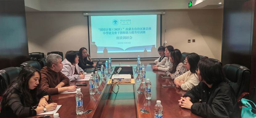 10月24日晚,“国培计划(2025)”内蒙古自治区旗县级小学语文骨干教师培训班调研座谈会正式举行。首席执行专家由秀芳、beats365文公司副经理林秀丽、beats365副经理汪鑫参加会议,十余名小学语文参训教师代表围绕培训学习与教学实践结合情况展开深入交流,会议由汪鑫副经理主持。