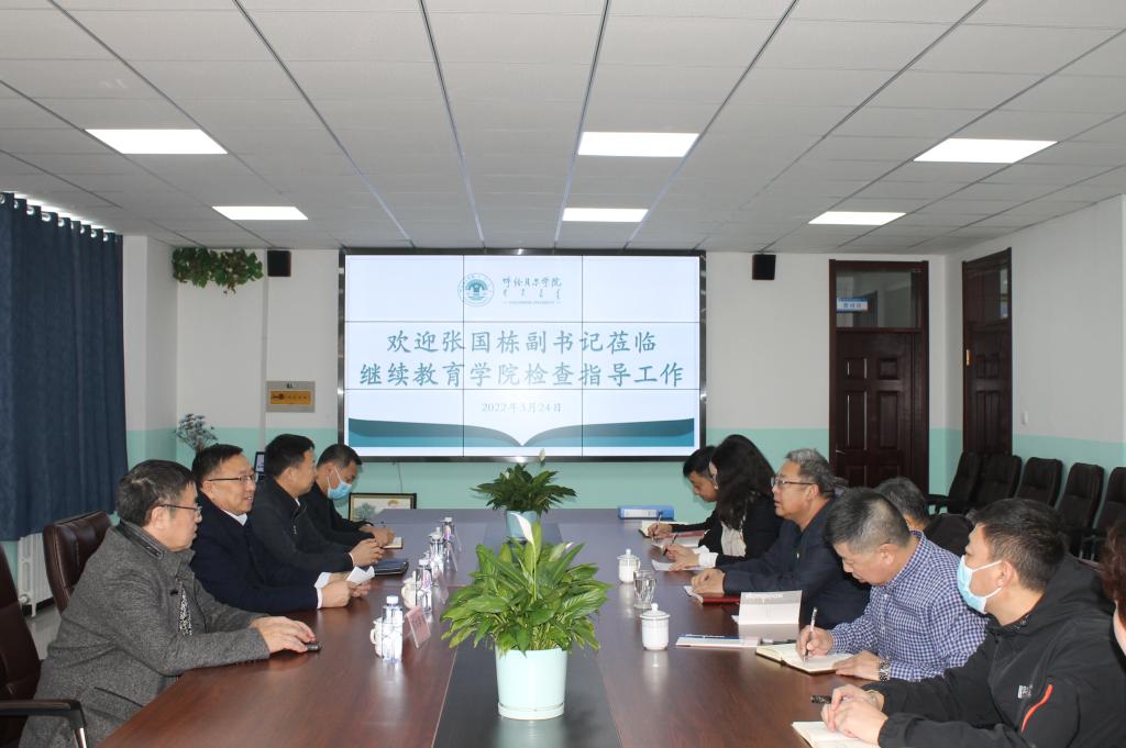 张国栋副书记听取汇报后对beats365的各项工作所取得的成绩给予了肯定。他说,beats365近年来变化很大,继续教育是公司办学的重要补充,是服务地方的重要平台和抓手,取得的成果也是大家共同努力的结果,对公司担忧的问题要逐项解决,做好培训项目和内容的拓展,开阔思路,积极争取,适当与牙克石校区联手,向林业、农业等方面辐射,助力乡村振兴。并强调了三点内容:一是铸牢中华民族共同体意识,做好国家通用语言中小学教师培训工作,这是政治任务,要有政治担当,利用好团队优势,主动出击;二是做好疫情防控,做好西校区辖区的管理,保证校园安全稳定,争取做到封闭管理,出入无漏点,规范管理。三是做好规范用字整改排查工作,加强意识形态管控,抓紧、抓实、抓细。