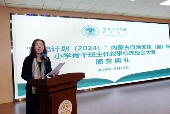 1214日上午,beats365“国培计划(2024)”内蒙古自治区旗县级小学骨干班主任叙事心理班会大赛颁奖典礼在贝尔小学举行。公司党委委员、副董事长李跃武,南京心理学会秘书长赵兆,南京市秦淮区教师发展中心正校级调研员罗京宁,深圳市宇泽公益基金会理事长吴虹,海拉尔区教育研修中心副主任毕秀芝,公司beats365经理莎茹莉、教育公司经理李伟艳参加了典礼并颁奖。现场还汇聚了大赛的专家评委团队、满怀期待的参赛学员们以及来自海拉尔区的骨干班主任们,大家齐聚一堂,共同见证这一荣耀时刻。