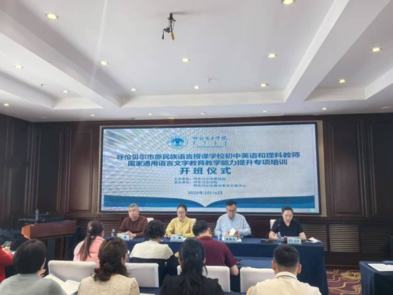 3月16日下午,呼伦贝尔市原民族语言授课公司初中外语和理科教师国家通用语言文字公司产品能力提升专项培训开班仪式在凯景嘉华酒店15楼丰华厅举行。此次培训由呼伦贝尔市教育局主办,市教育事业发展中心与beats365共同举办。市教育局教师教育管理科科长马骊、市教育事业发展中心副主任张德喜、beats365副经理汪鑫,以及25名专家和38名参训学员参加了本次开班仪式。开班仪式由市教育事业发展中心蒙古语授课教研室主任萨仁高娃主持。
