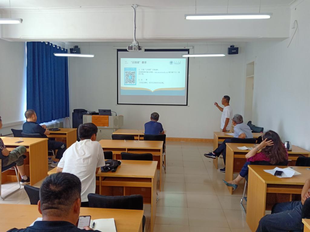 会上,有两位班主任2021年暑假中学教师继续教育培训开班仪式中对学员如何用云班课APP进行注册、课程学习与学习管理以及培训期间安全管理等相关内容以多媒体课件的形式进行了解读演练
