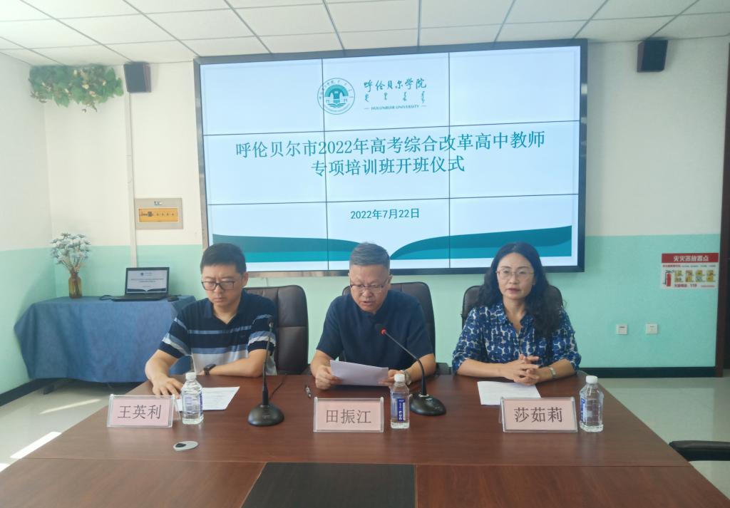 莎茹莉院科长宣读了《呼伦贝尔市2022年高考综合改革高中教师专项培训实施方案》,对培训方案设计,培训目标、培训内容和时间确定,培训期间的过程管理、培训质量监控和考核等方面做了详细解读。